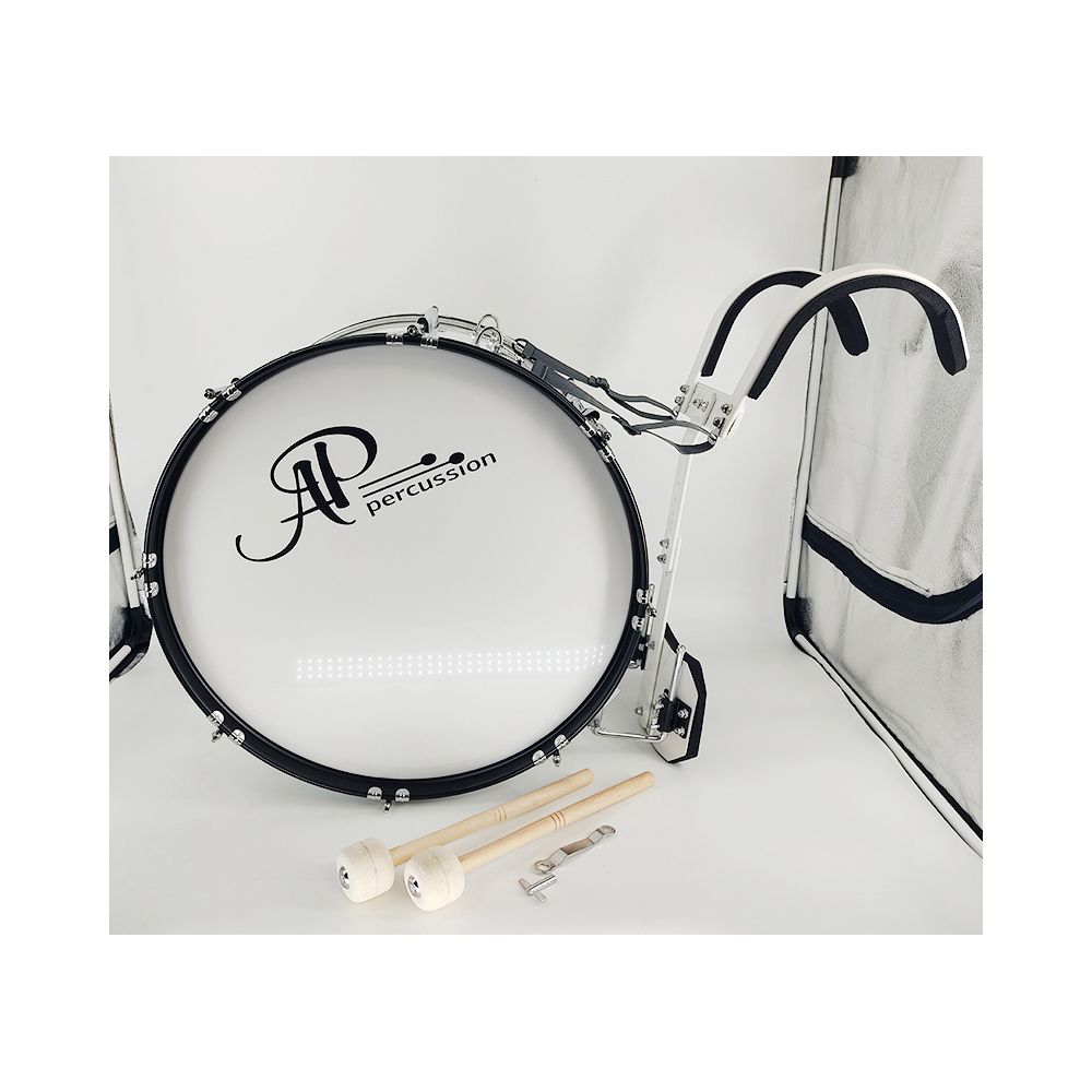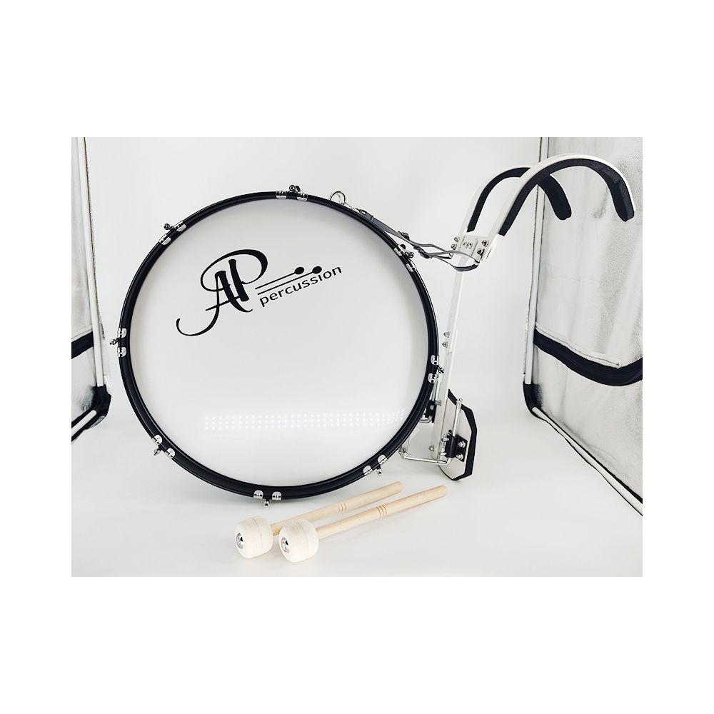 Большой маршевый барабан AP Percussion MB-2212 выполнен в белом цвете, который прекрасно дополняет черная фурнитура. Ободы изготовлены из прочной стали и покрыты черным цветом. Модель поставляется в комплекте с держателем и двумя колотушками. AP Percussion MB-2212 – отличный маршевый барабан по доступной цене.