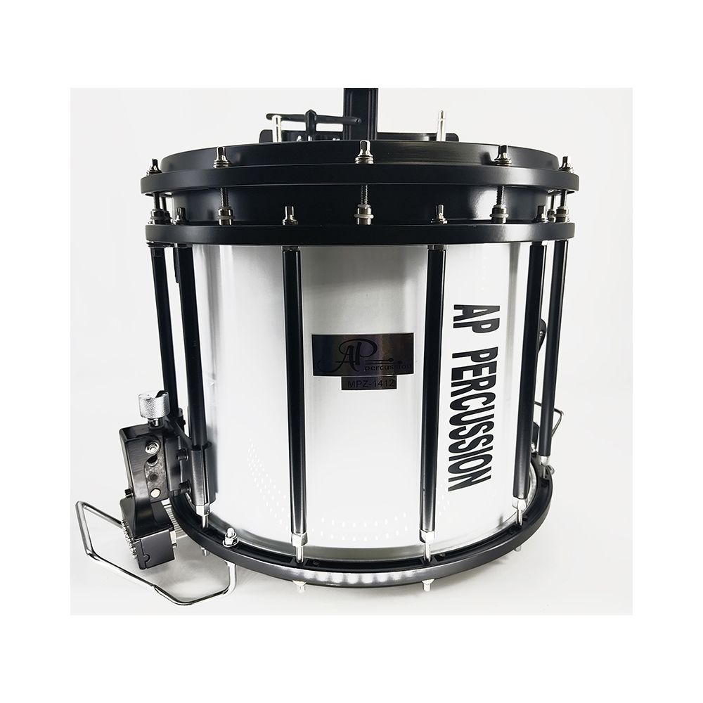 Маршевый барабан малый профессиональный 14"х12" белый, черная фурнитура с держателем, палочки. Характеристики: Размер: 26"х12" Корпус: береза Ободы: сталь; черные Фурнитура: черная Комплектация: наплечный держатель, 2 колотушки Цвет: белый Страна-производитель: Китай