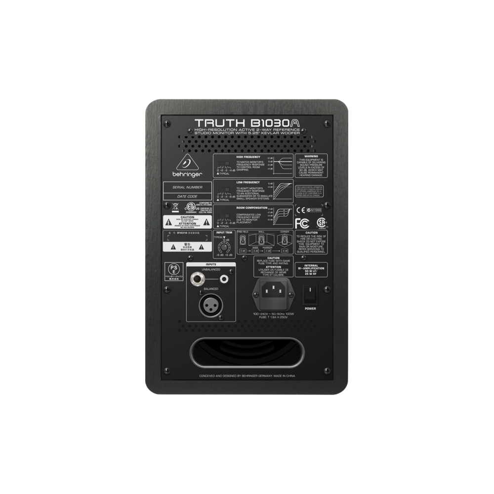 Активный 2-полосный студийный монитор. B1030A оборудованы серво-сбалансированными входами на XLR- и TRS-разъёмах для возможности подключения к различным источниками звука. Благодаря компактным размерам и магнитному экранированию, мониторы TRUTH B1030А можно размещать рядом с видеомониторами, компьютерными дисплеями или цифровыми рабочими станциями. B1030A поставляется в индивидуально подобранных парах с индивидуальными диаграммами АЧХ. Контролируемая дисперсия и чрезвычайно широкий угол раскрытия, обеспечивающийся уникальной технологией волновода BEHRINGER. Гибкая адаптация к разнообразным акустическим условиям. Электромагнитное экранирование для установки мониторов рядом с компьютерными дисплеями.