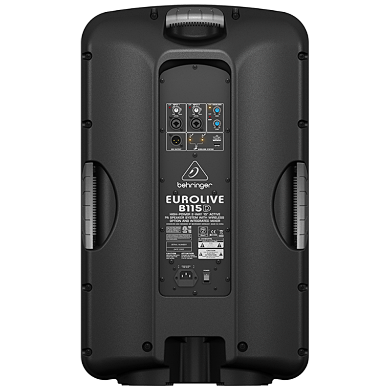 Behringer B115D Акустическая система активная, 2-х полосная, 15", 1000Вт, усилитель класса D, встроенный микшер, порт для подключения беспроводного радиомикрофона