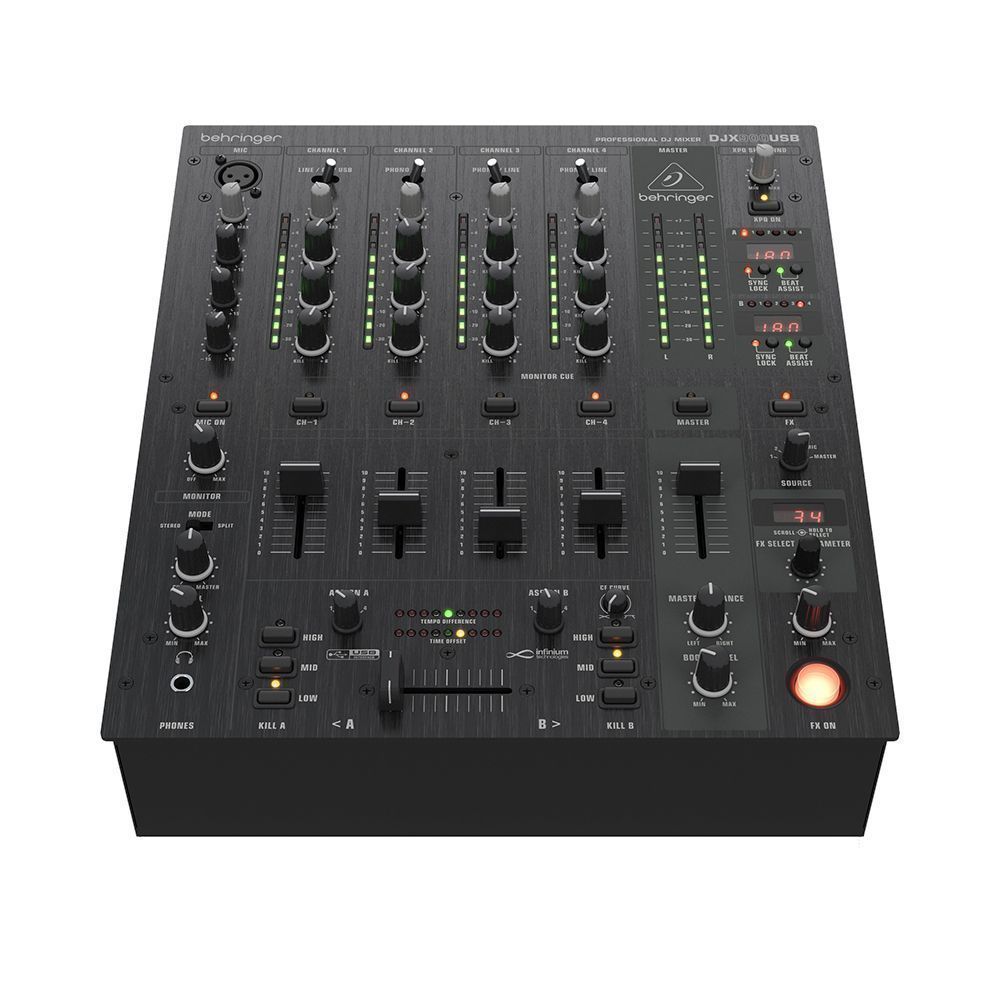 Behringer DJX900USB DJ микшерный пульт со счетчиком темпа, 5 входных каналов (4 стерео, плюс микрофонный), 3D-surround, процессор эффектов, VCA-кроссфейдер, USB аудио интерфейс