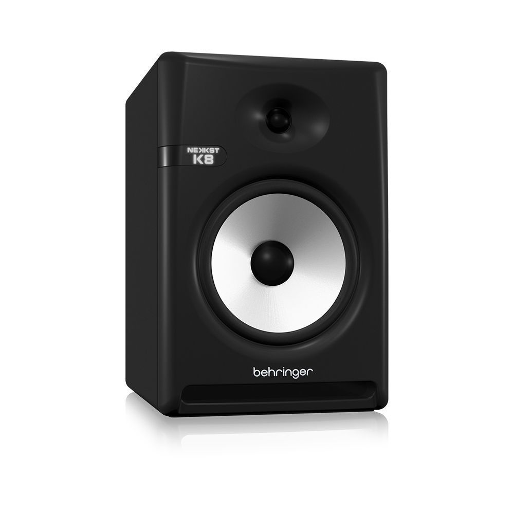 Behringer NEKKST K8 – профессиональный студийный монитор, обеспечивающий достаточную громкость музыки для аудитории на несколько десятков человек. В номинальном режиме работы его максимальная мощность равняется 100 Вт. Пиковые нагрузки могут достигать 150 Вт. K8 – монитор, появившийся в результате сотрудничества отдела разработок Behringer и инженера Кита Клавиттера, известного созданием бренда аудиотехники KRK. Колонка характеризуется несколькими оригинальными технологиями, которые используются исключительно в динамиках NEKKST, в том числе двухступенчатой системой усиления и особыми материалами излучателей. Помимо этого, NEKKST K8 оснащена сложной системой защиты драйверов от перегрузок и переключаемыми частотными фильтрами, подстраивающими звучание под акустику помещения. Для усиления сигнала используется разработанная специально для этой серии система Bi-amping, состоящая из четырёх усилительных блоков.