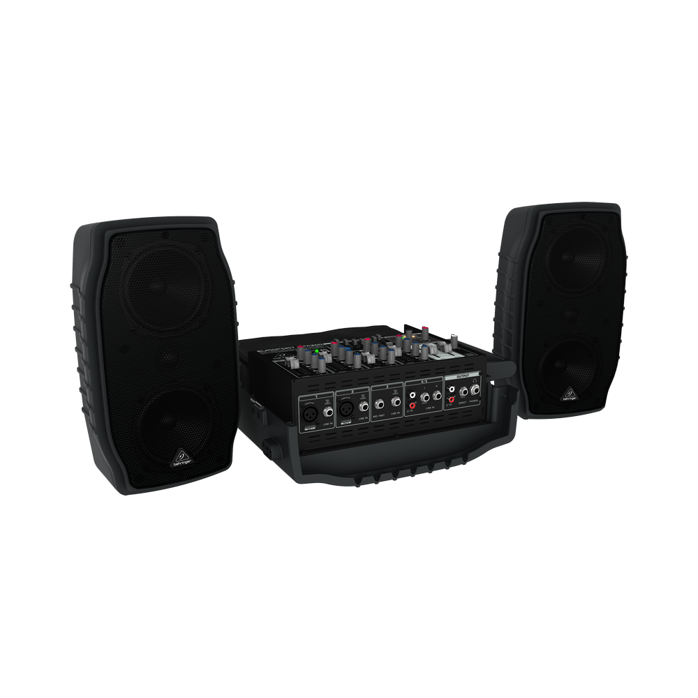 Behringer PPA200 Система звукоусиления портативная 2*75 Вт, 5 каналов, процессор эффектов Klark Technik, FBQ, XM1800S в комплекте, динамики 1*1,35", 1*4", Bluetooth, порт для подключения беспроводного микрофона.