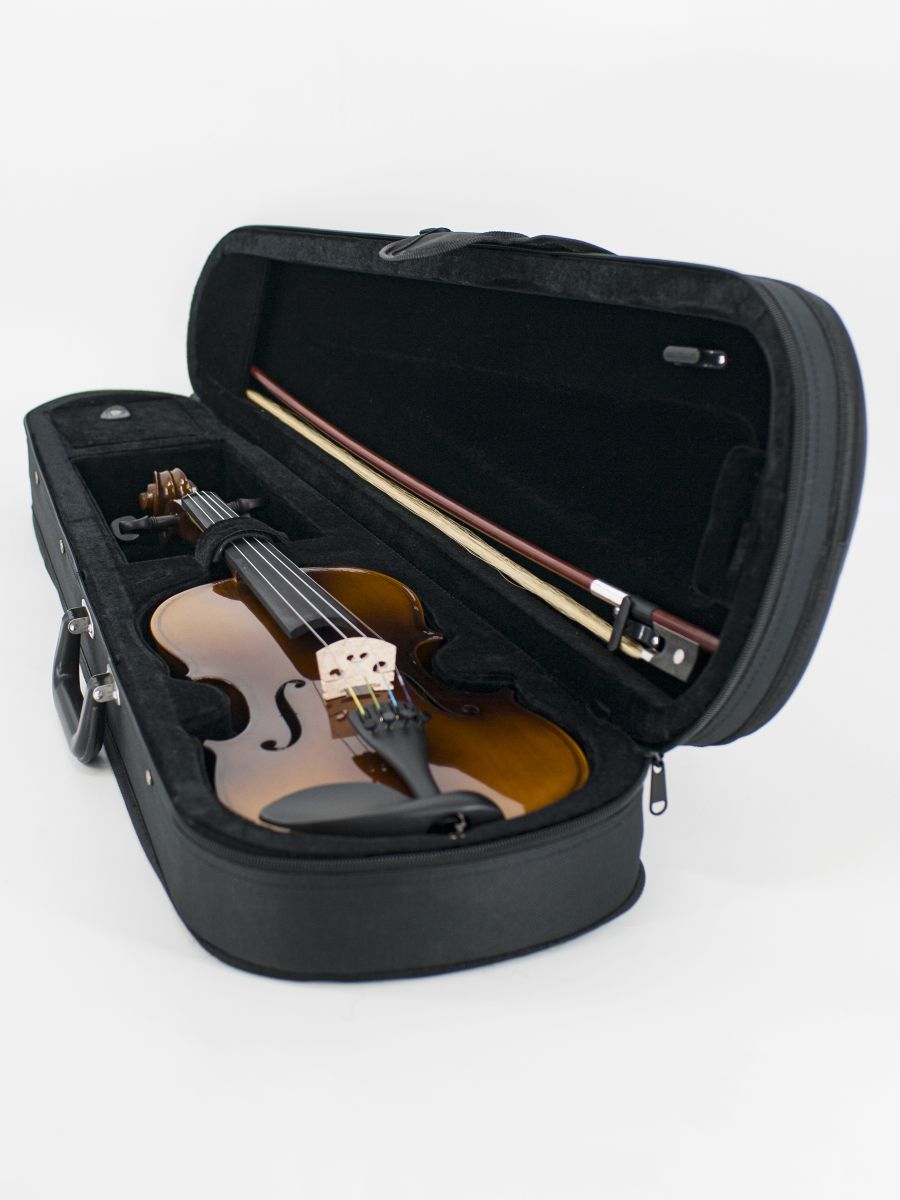 HMI HV-100HA 3/4 Скрипка Student 3/4, в кейсе, смычок, канифоль, верхняя дека - ель, нижняя дека, обечайки - клен, гриф- клен, лак