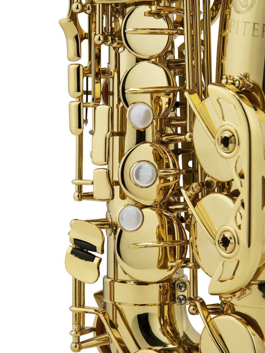 Jupiter JAS1100Q Саксофон альт Eb, эска "Sona-Pure", клапан верхнего F#, регулируемый упор для большого пальца, покрытие корпуса и клапанов золотой лак, облегченный кейс JKC-AS55FU