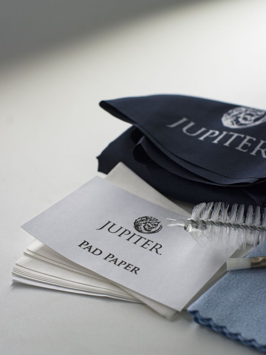 Jupiter JCM-SXK1 - набор для ухода за саксофоном предназначен для поддержания чистоты и работоспособности вашего саксофона, обеспечивая долгий срок службы инструмента. Набор включает в себя: - Полировальную салфетку - Шелковую салфетку для корпуса - Ершик для корпуса - Ершик для мундштука - Смазку для пробки - Футляр / держатель для трости - Бумагу для чистки клапанов