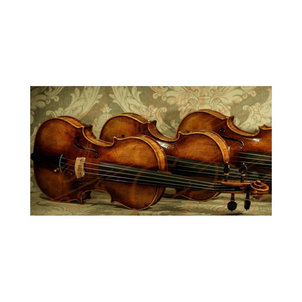 Прекрасная сольная мастеровая скрипка размером 4/4, изготовленная из высушенного естественным образом 50-летнего раритетного европейского клёна и тирольской ели. Ручная античная лакировка с лёгкой имитацией старинной скрипки. Прозрачный лак на золотистом грунте на основе природных смол и бальзамов с использованием масел и минералов передает стиль эпохи, подчеркивая красоту и звучание инструмента. Деревянный подгрифник и колки из чёрного африканского дерева, струны Evah Pirazzi Gold фирмы „Pirastro“ . Модель скрипки базируется на акустических решениях и формах старых мастеров и имеет исключительную эстетическую привлекательность. Скрипка мастеровая 4/4, Limited Edition, изготовленная из высушенного естественным образом 50-летнего раритетного европейского волнистого клёна и тирольской ели класса +ААА, струны Evah Pirazzi Gold, кейс JW 52017.