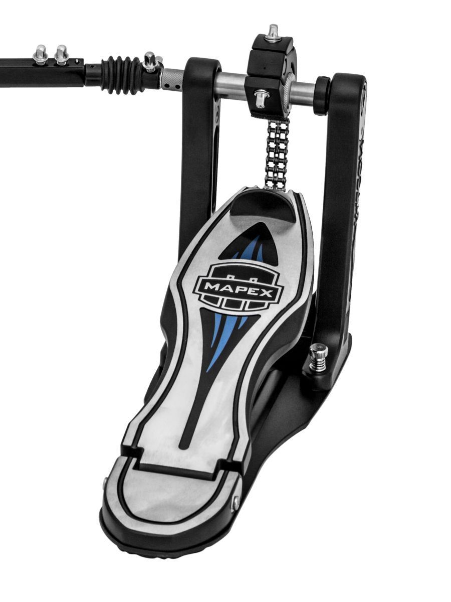 В течение двух лет специалисты отдела инновационных технологий компании MAPEX встречались с барабанщиками со всего мира, наблюдали за их игрой и спрашивали, что же является крайне важным для создания идеальной педали бас-барабана. Конструкция педали включает ряд особенностей: - Регулируемый упор для ноги, предотвращающий соскальзывание; - Регулировка угла наклона колотушки; - Регулировка угла наклона педали; - Сменная система привода, позволяющая переходить от цепного к ременному приводу в зависимости от вашего вкуса; - Эргономичность (основа педали Falcon занимает меньше места на полу, позволяя тем самым легко располагаться возле стойки для малого барабана и хай-хэта во время использования модели с двумя педалями); - Усовершенствованная платформа даёт ощущение более длинной основы, но в то же время сохраняет преимущества лёгкой педали, сконструирована для обеспечения баланса между силой и чувством; - Устойчивость; - Запатентованные шарниры для большей безопасности и точности всех движений.