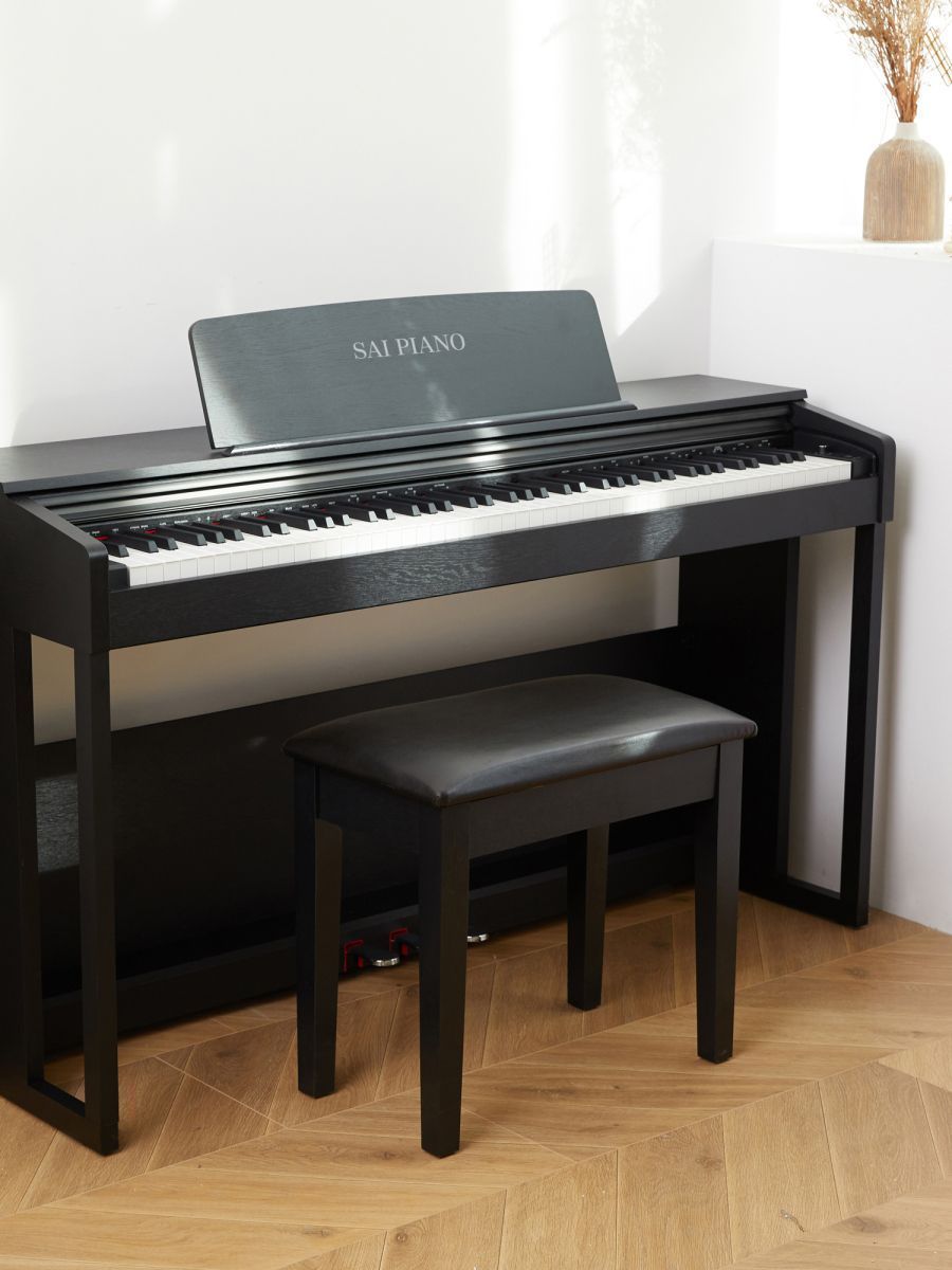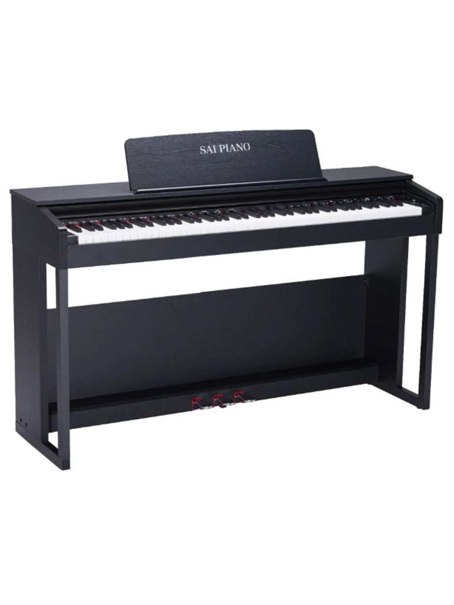 Sai Piano P-150BK Пианино цифровое, 88 клавиш, молоточковая механика, 300 тембров, 128 полифония, 60 предустановленных песен, 200 ритмов, реверберация, хорус, динамики 2*25Вт, стойка, три педали, цвет черный