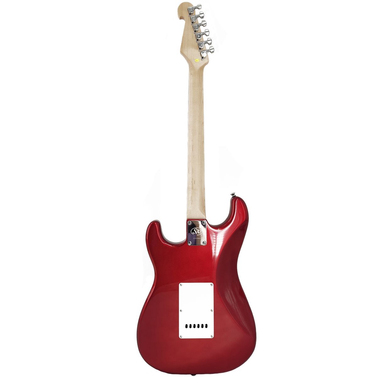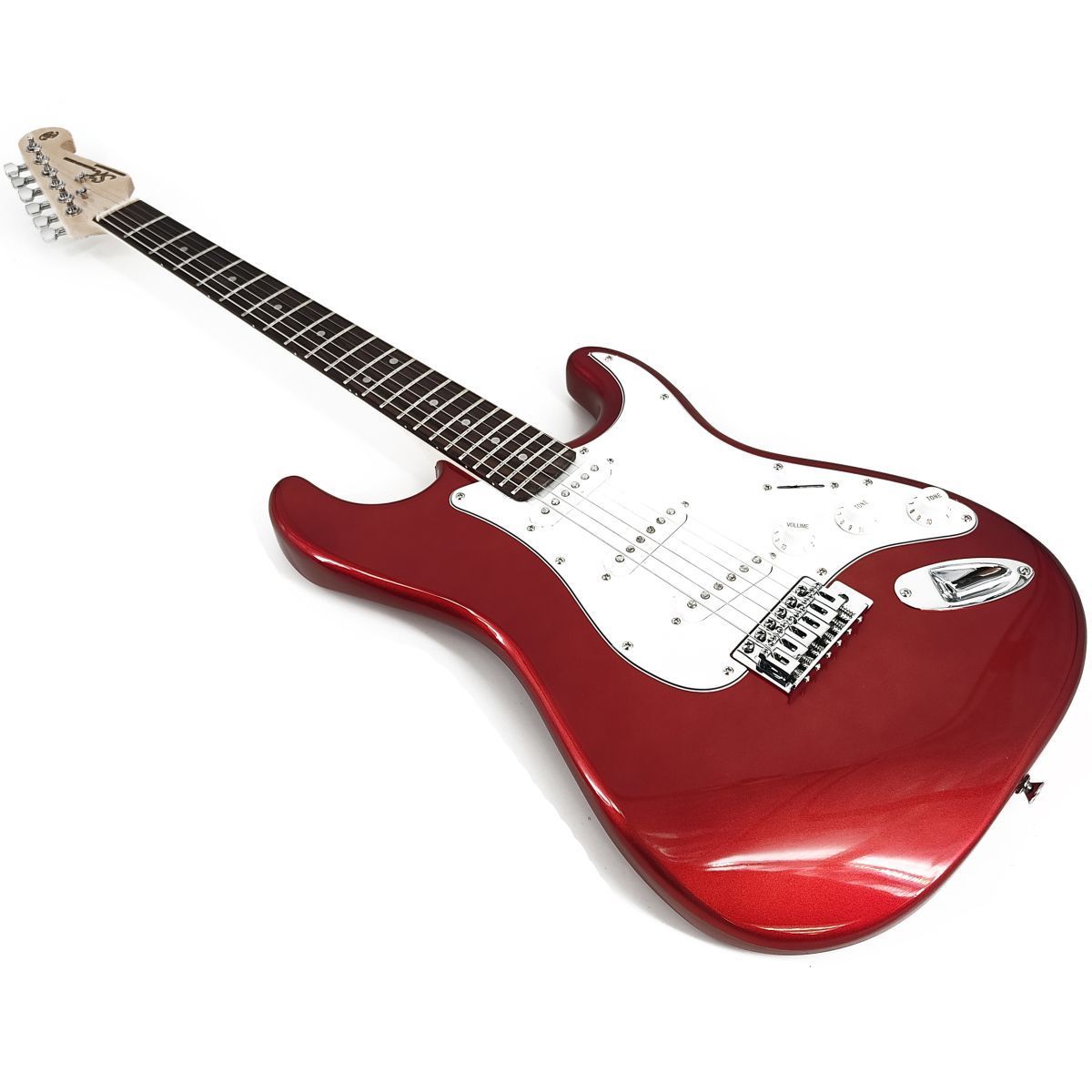 SX SE1-SK/CAR Набор: электрогитара, корпус: липа, гриф: клен, накладка: палисандр, анкер, 22 лада, звукосниматели 3 Single Coil, контроллеры: 1 громкость, 2 тона, 5 позиционный переключатель, цвет: Candy Apple Red, комбо 10Вт, кабель, ремень, тюнер, 6 медиаторов, чехол