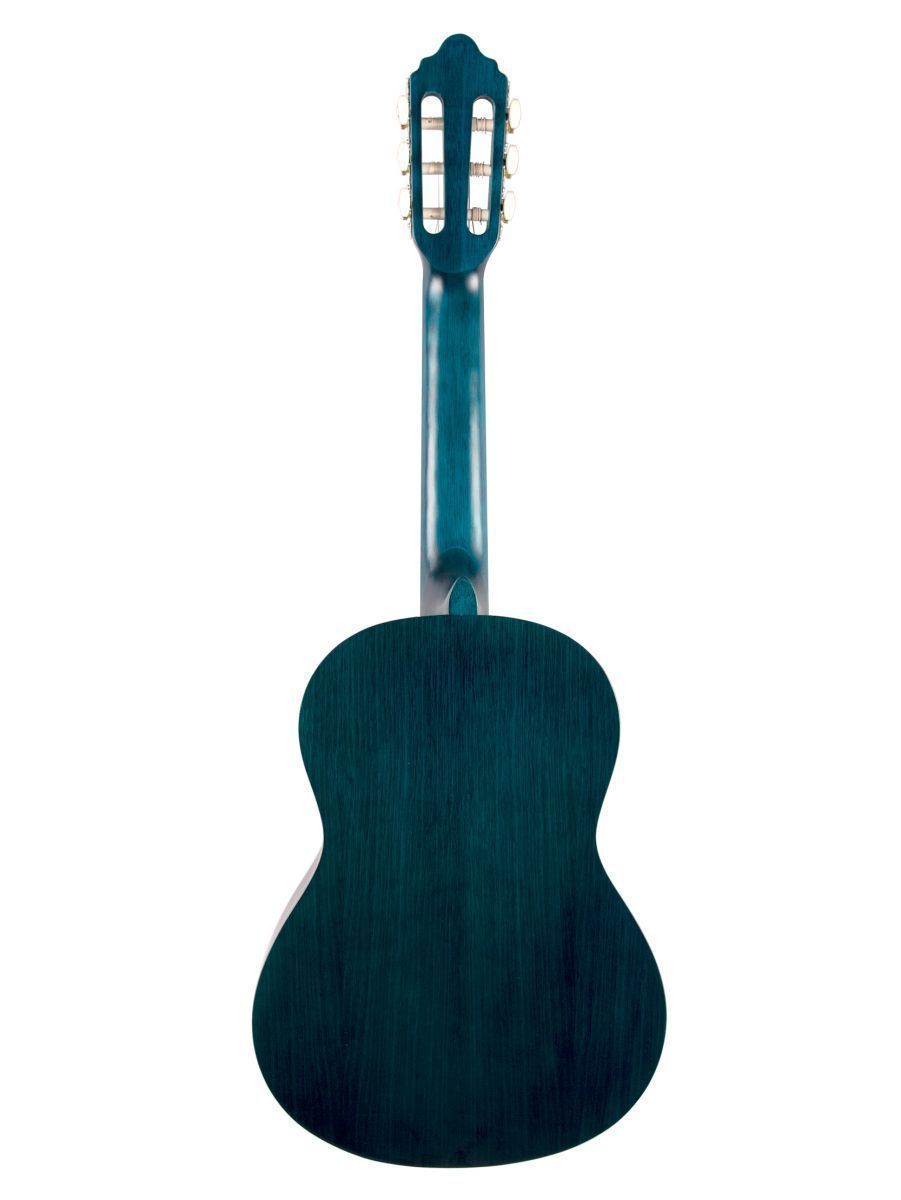 Valencia VC202TBU Гитара классическая 1/2, верхняя дека: ель, нижняя дека и обечайка: нато, гриф: махагони, накладка грифа и нижний порожек: махагони, колки: винтажные, никель, цвет Transparent Blue