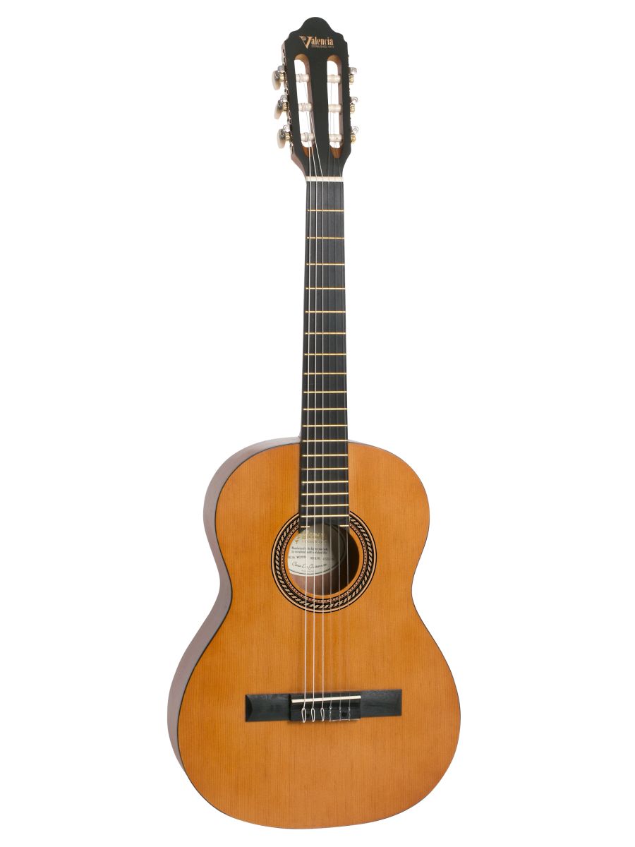 Valencia VC203H Гитара классическая 3/4, верхняя дека: ель, нижняя дека и обечайка: нато, узкий 45 мм гриф: махагони, накладка грифа и нижний порожек: махагони, колки: винтажные, никель, цвет натуральный